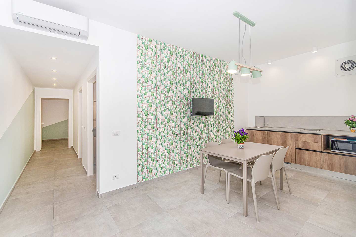 Il nostro appartamento 8 è molto spazioso,luminoso e accogliente,ampio 60 metri,è dotato di 2 camere da letto matrimoniali e di una zona giorno con una comoda,pratica e funzionale cucina.