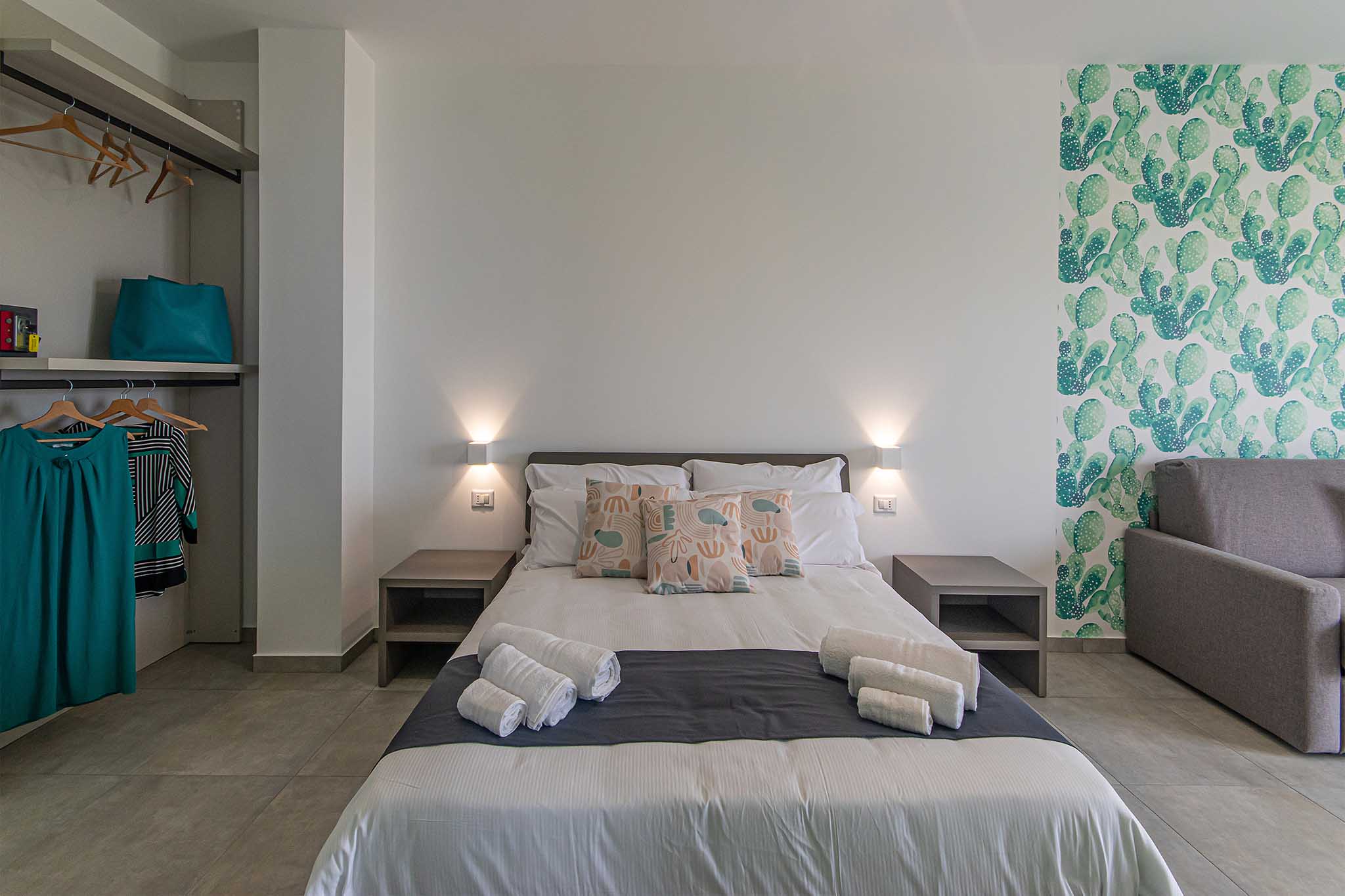 Questa camera permette il soggiorno anche alle persone diversamente abili in quanto è dotata di accesso e bagno con doccia a filo pavimento