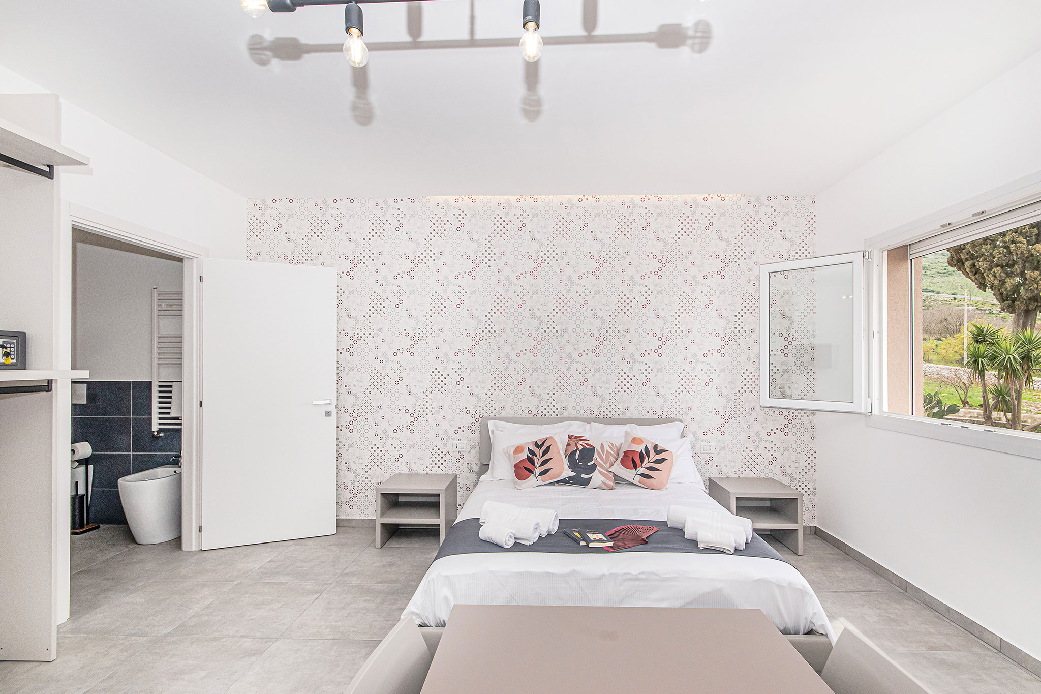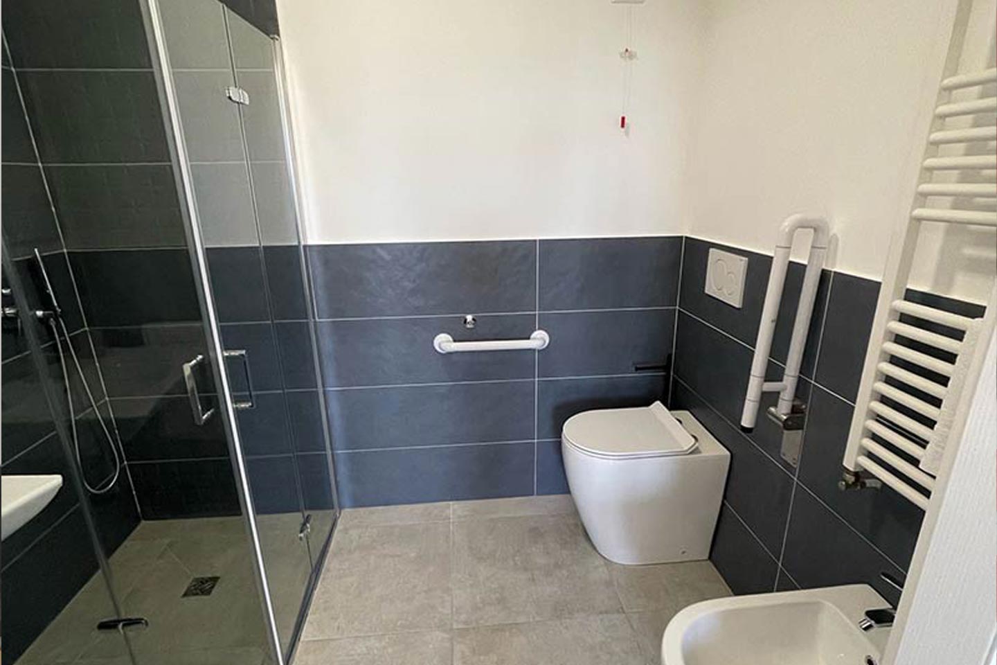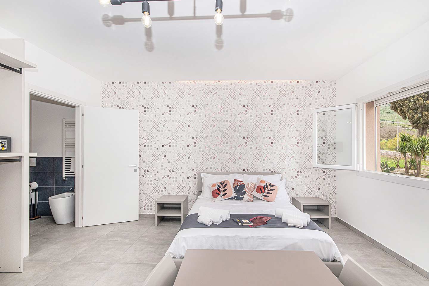 Questa camera permette il soggiorno anche alle persone diversamente abili in quanto è dotata di accesso e bagno con doccia a filo pavimento.