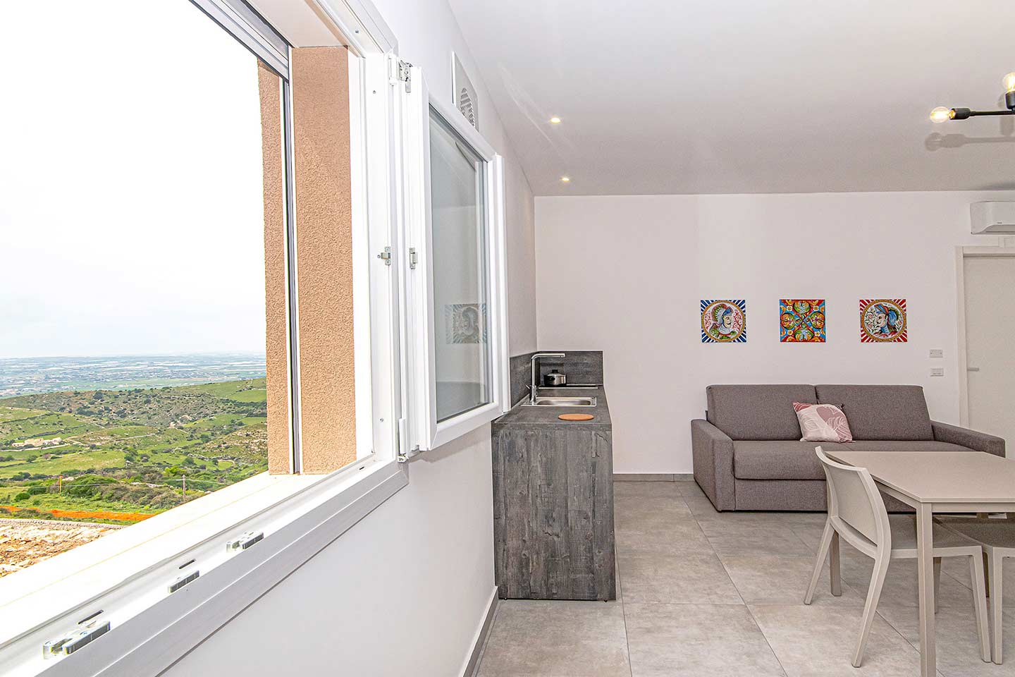 Anche se la camera non possiede balcone,le finestre vi danno ugualmente la possibilità di godere di uno panorama splendido.
